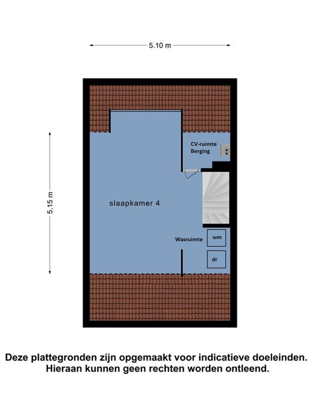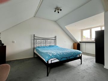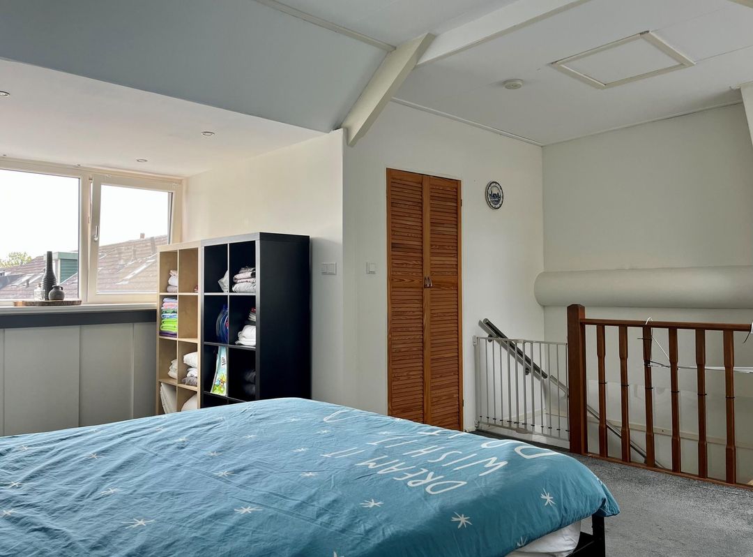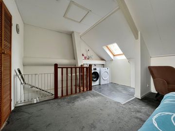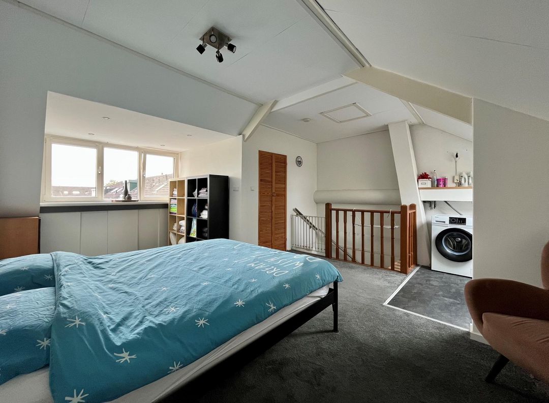 Open zolder met wasgedeelte. Hier zijn de aansluitingen voor een wasmachine en wasdroger. Tevens een extra dakraam aanwezig. Een separaat gedeelte voor de cv-combiketel en extra bergring. Ruime slaapkamer met dakkapel aan de achterzijde.