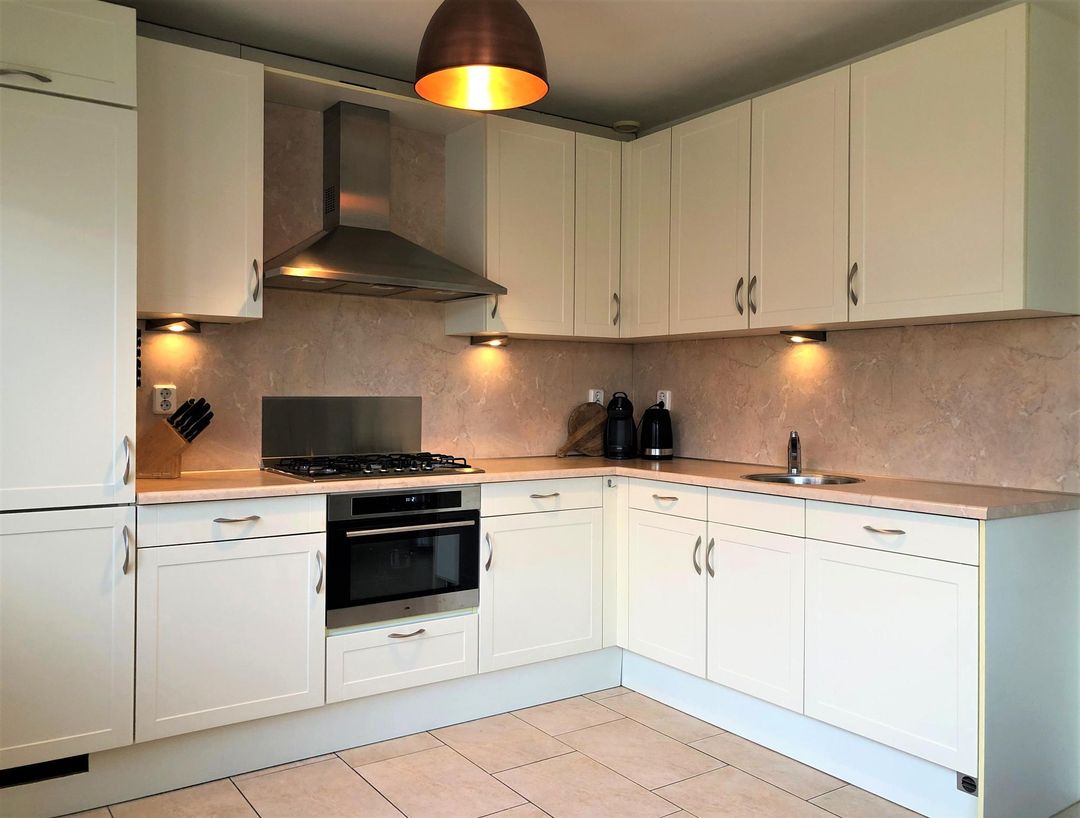 De open keuken is afgewerkt met een L-vormige inbouwkeuken (modern) en voorzien van alle benodigde inbouwapparatuur.
