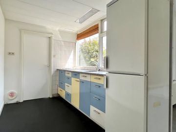 De keuken is voorzien van een nette, rechte inbouwkeuken met losse en inbouwapparatuur.