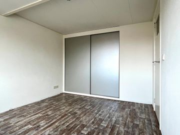 Alle drie de slaapkamers zijn netjes afgewerkt, hebben een keurige laminaatvloer en zijn voorzien van dubbele beglazing. De grote slaapkamer aan de achterzijde heeft een vaste kastenwand.